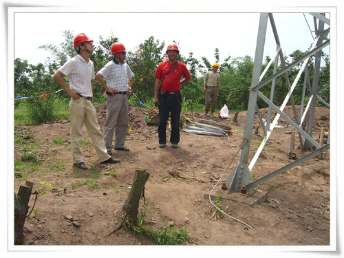 2009年6月4日,由四川成蜀电力建设有限公司总工程师郑宝庆带队,对江安-大观110kV线路在建工程的安全、质量、进度进行进行了全面检查并就工程技术问题进行现场指导。